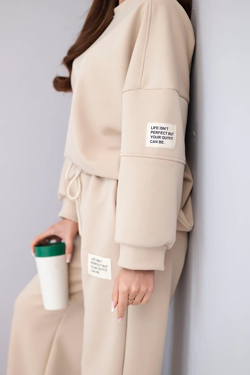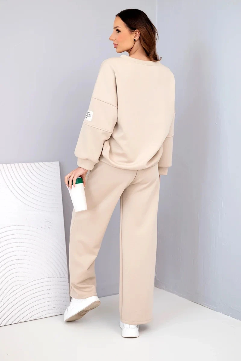 Vsadť na pohodlí a styl s tímto italským dámským teplákovým setem, který spojuje volnou mikinu s spadlým ramenním švem a pohodlnými kalhotami se širokým nohavicemi. Tento set je ideální volbou na každý den – hodí se jak doma, na procházce, tak i na neformální setkání.