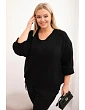 Dámská sada svetr s výstřihem do V a viskózová blůza s krajkovým spodním lemem černý