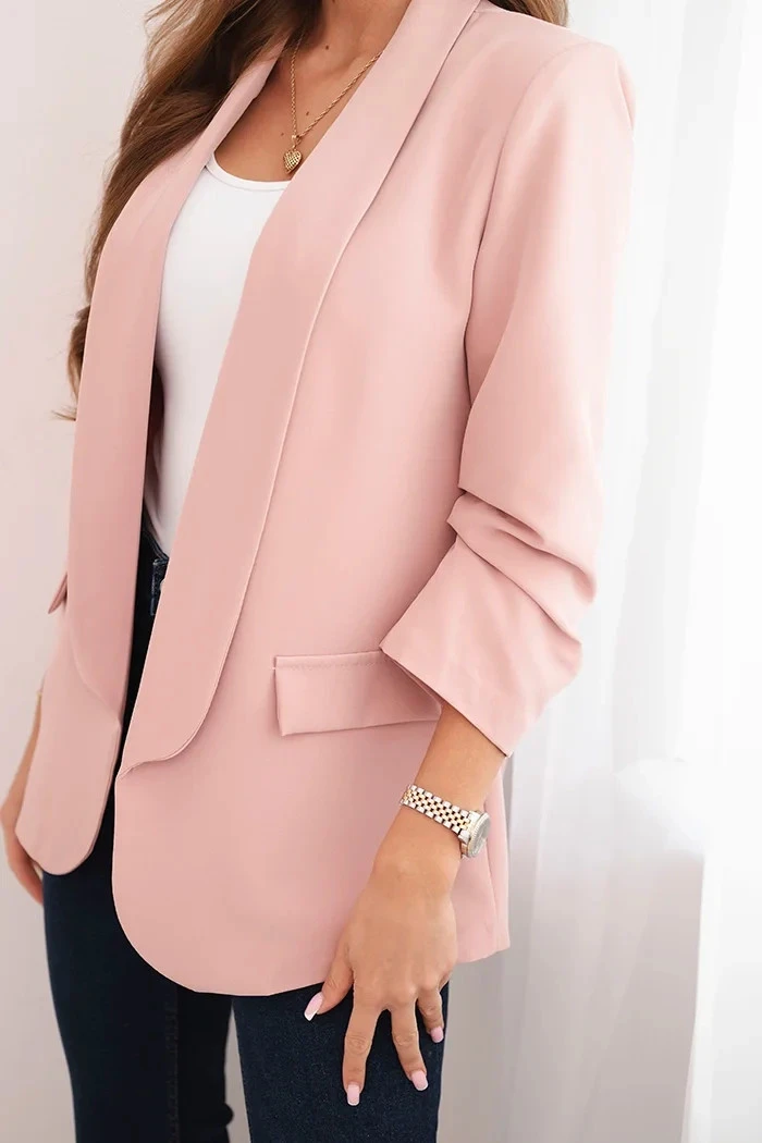Dámská sako bez zapínání s podšívkou S/M pudrově růžová