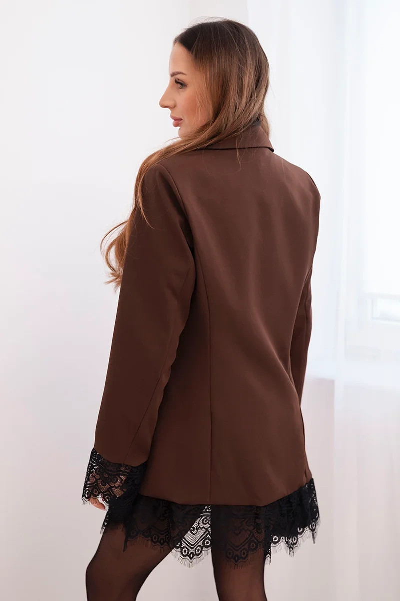 Dámská sako hnědá s krajkou na spodní části a na manžetách hnědá