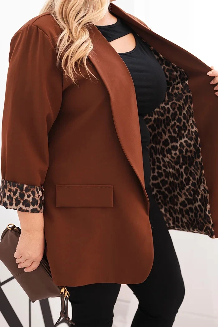 Dámská sako Plus Size s podšívkou v leopardím vzoru čokoládová