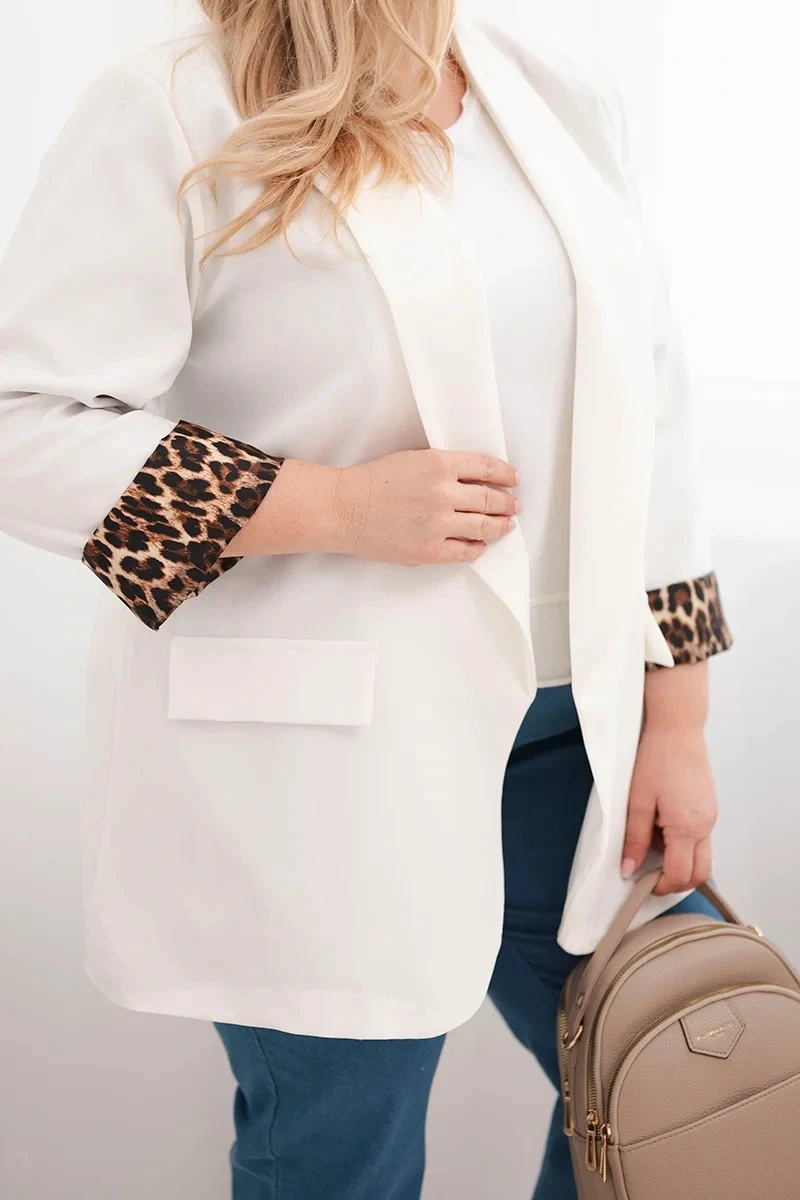 Dámská sako Plus Size s podšívkou v leopardím vzoru ecru