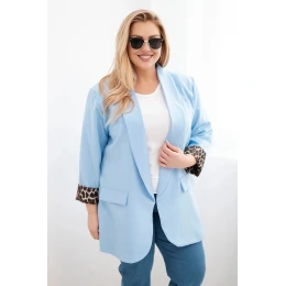 Dámská sako Plus Size s podšívkou v leopardím vzoru modrá