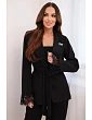 Dámská sako s páskem a krajkovým zakončením rukávů černá