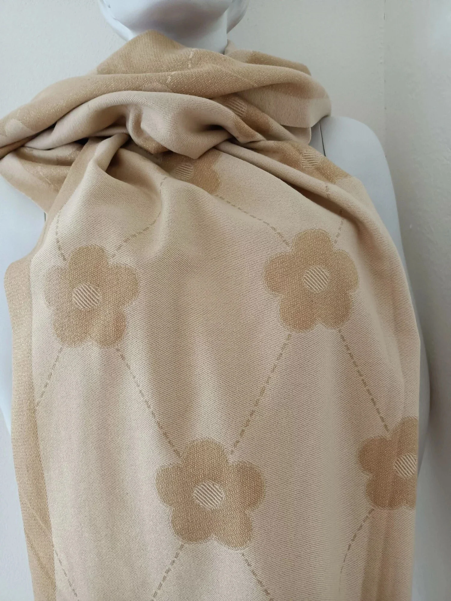 Dámská zlato-hnědá šála značky Moraj, na krajích střapce.