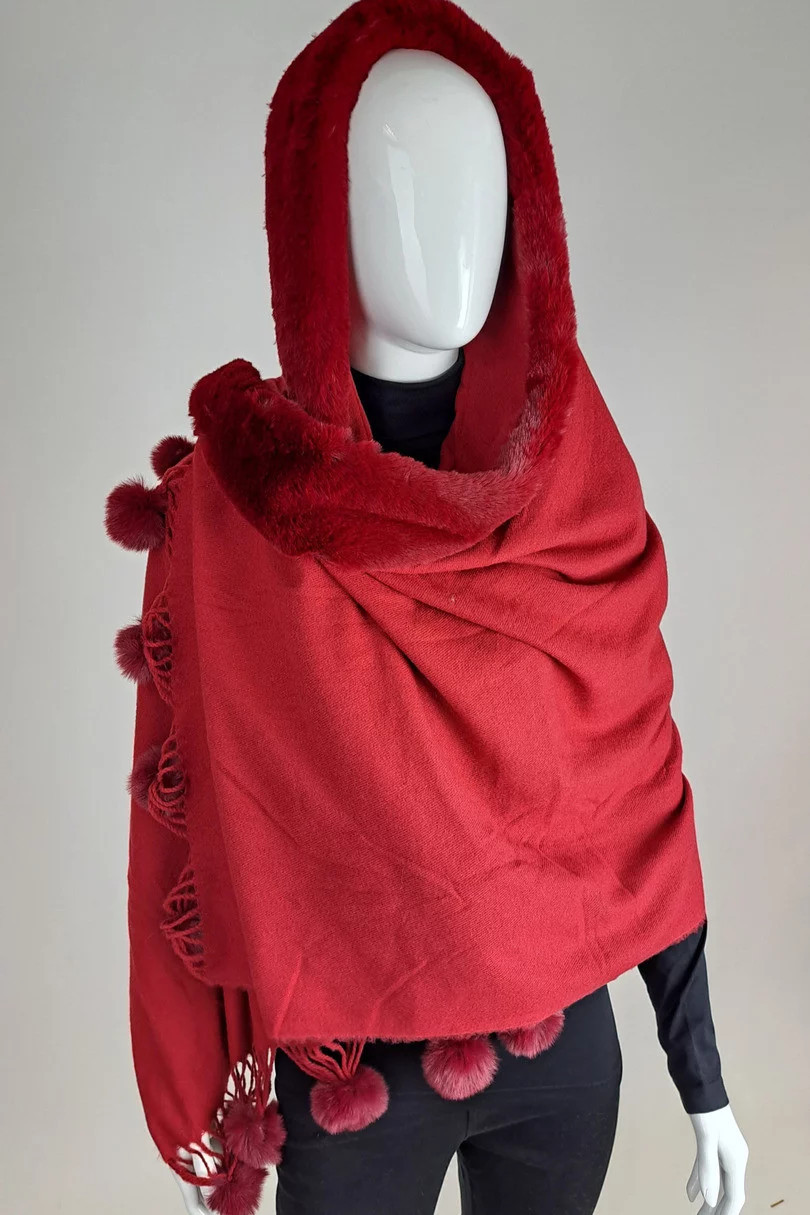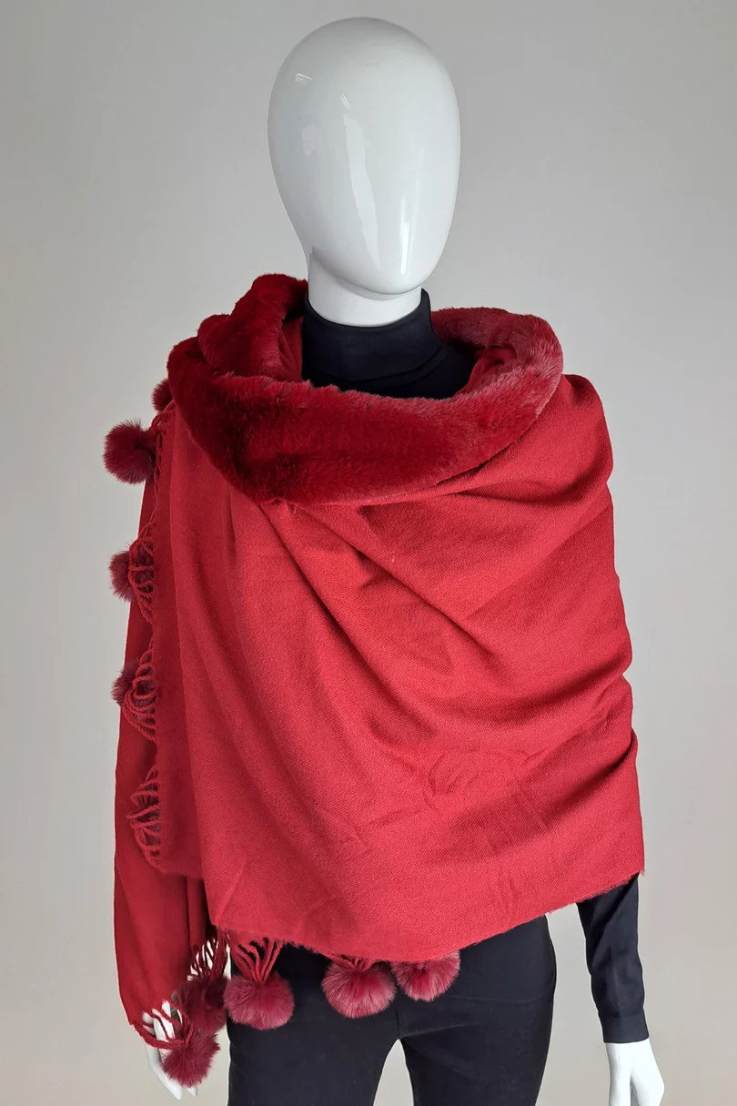 Krásná velká šála s přiloženým límcem z umělé kožešiny a bambulí. Mimořádně měkká a na dotek příjemná tkanina připomínající kašmír