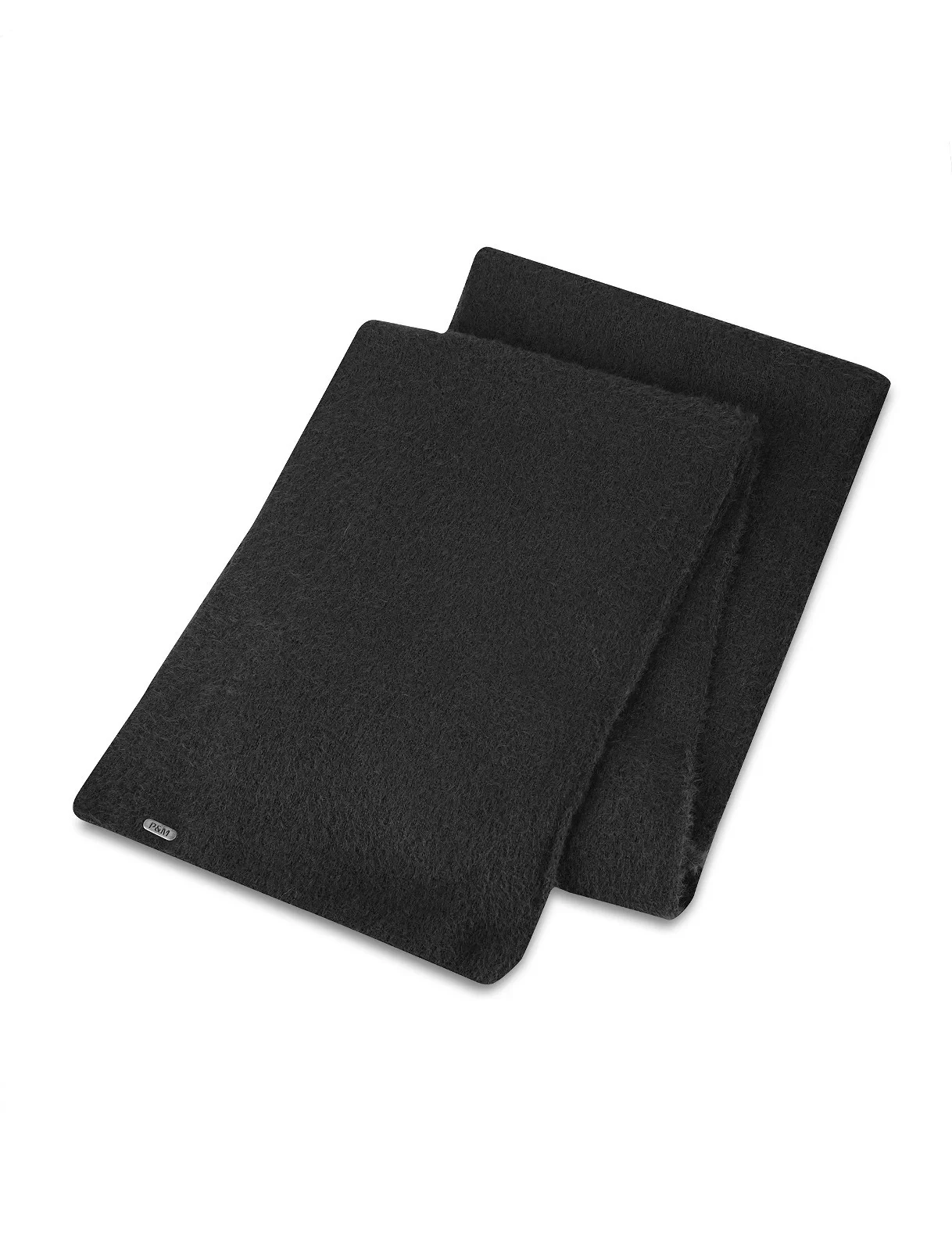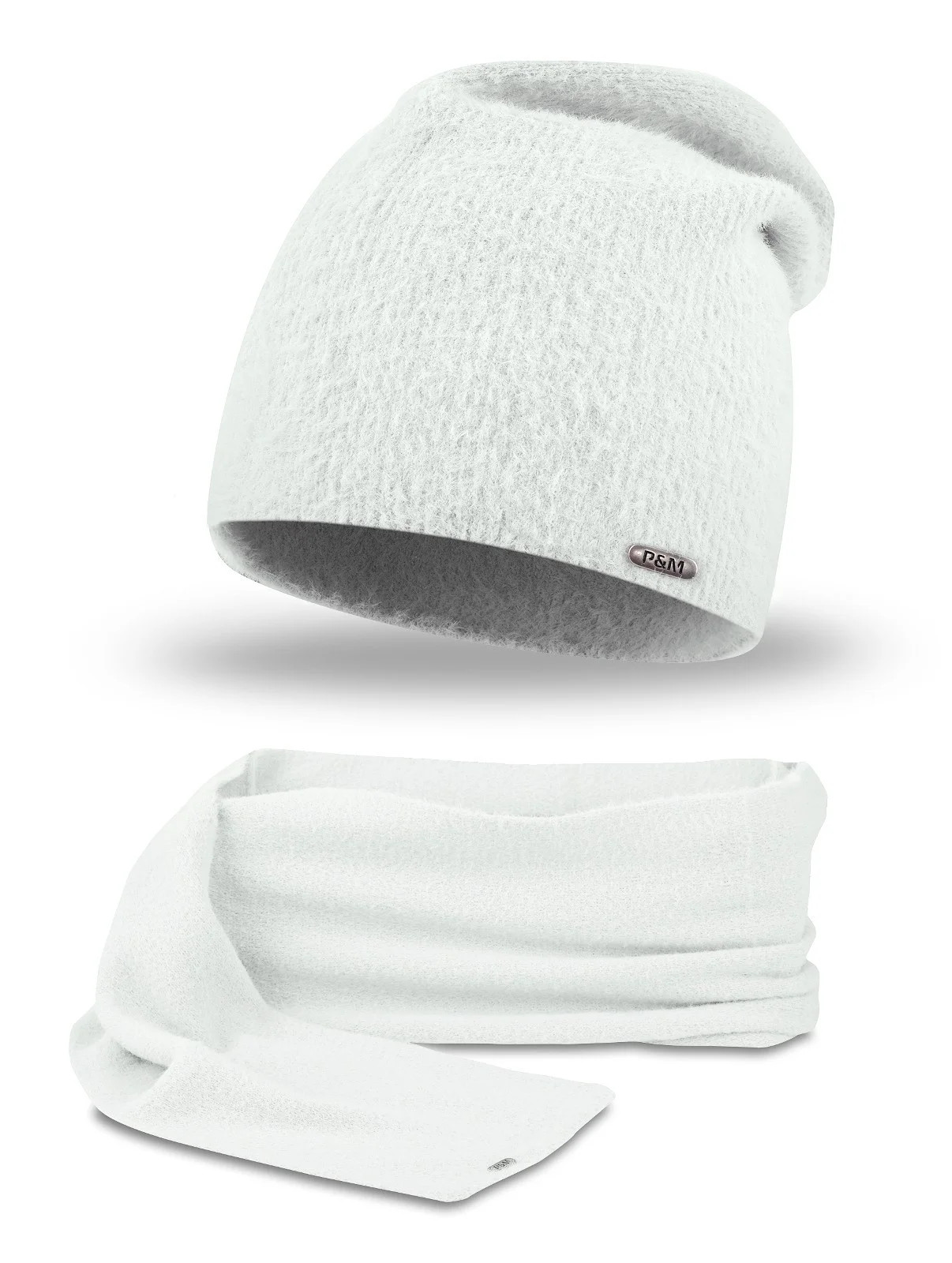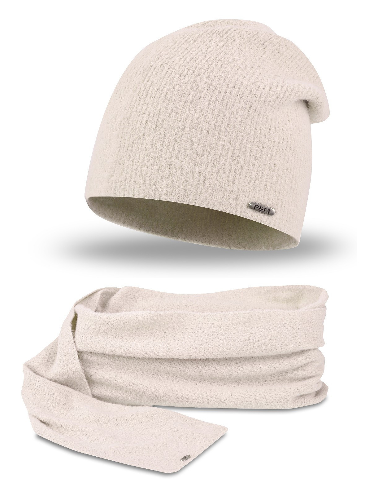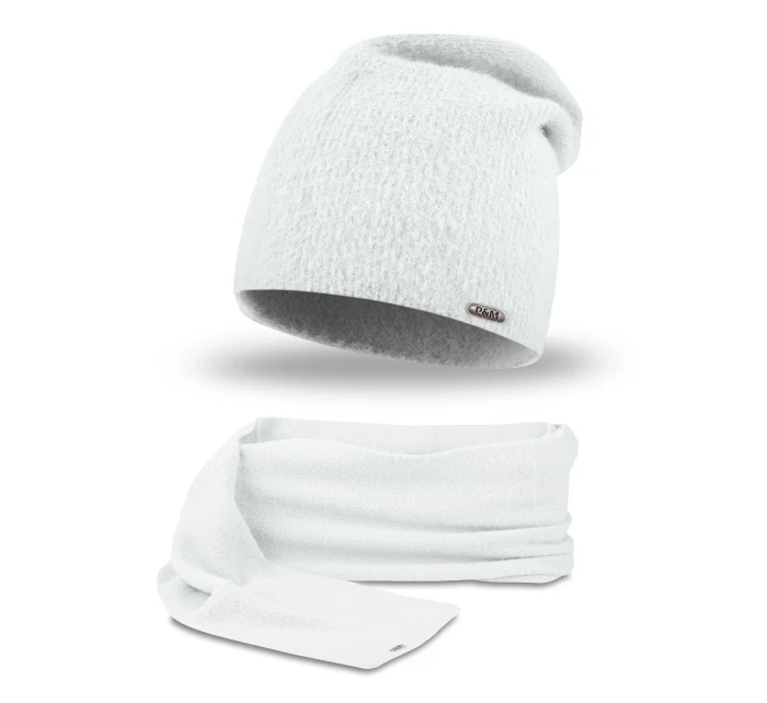 Šála je vyrobená z měkké a příjemné tkaniny s mechovitým kožíškem. Model zdobí logo P&M.