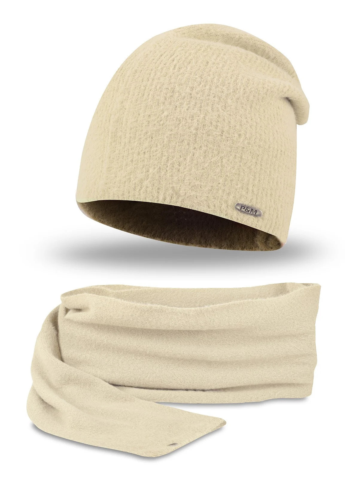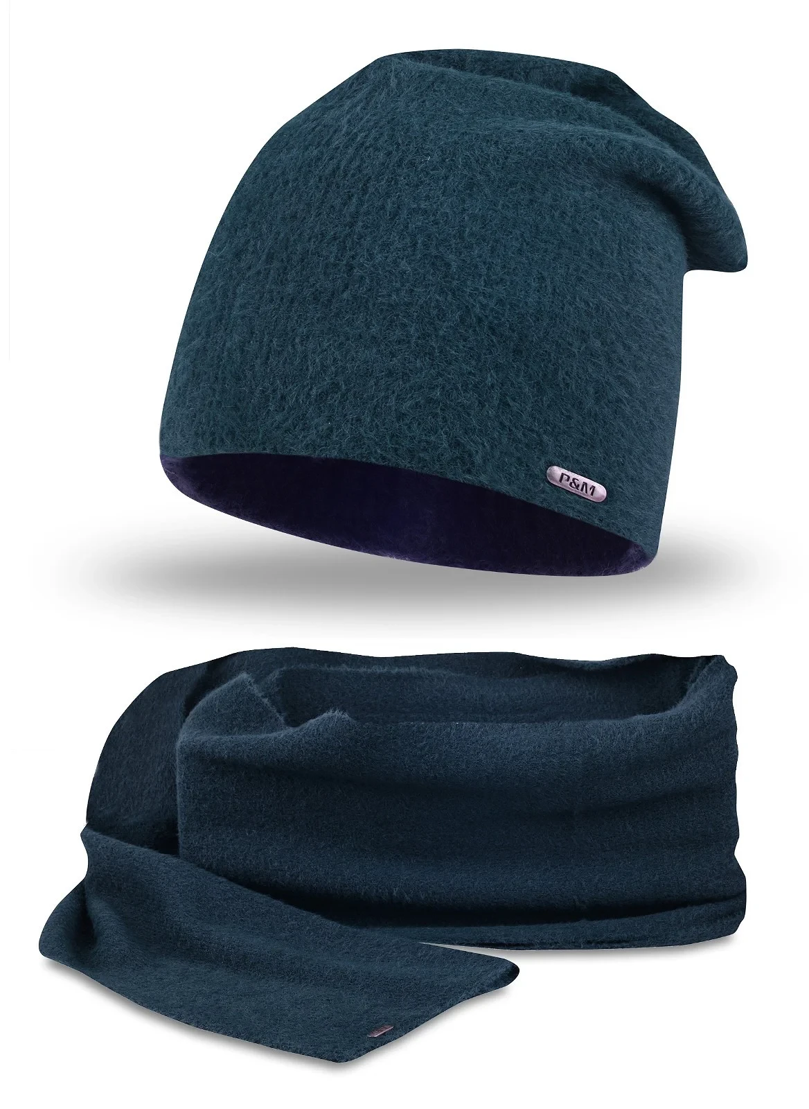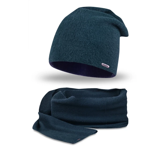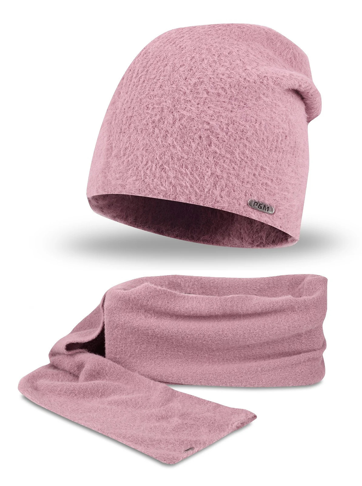 Šála je vyrobená z měkké a příjemné tkaniny s mechovitým kožíškem. Model zdobí logo P&M.