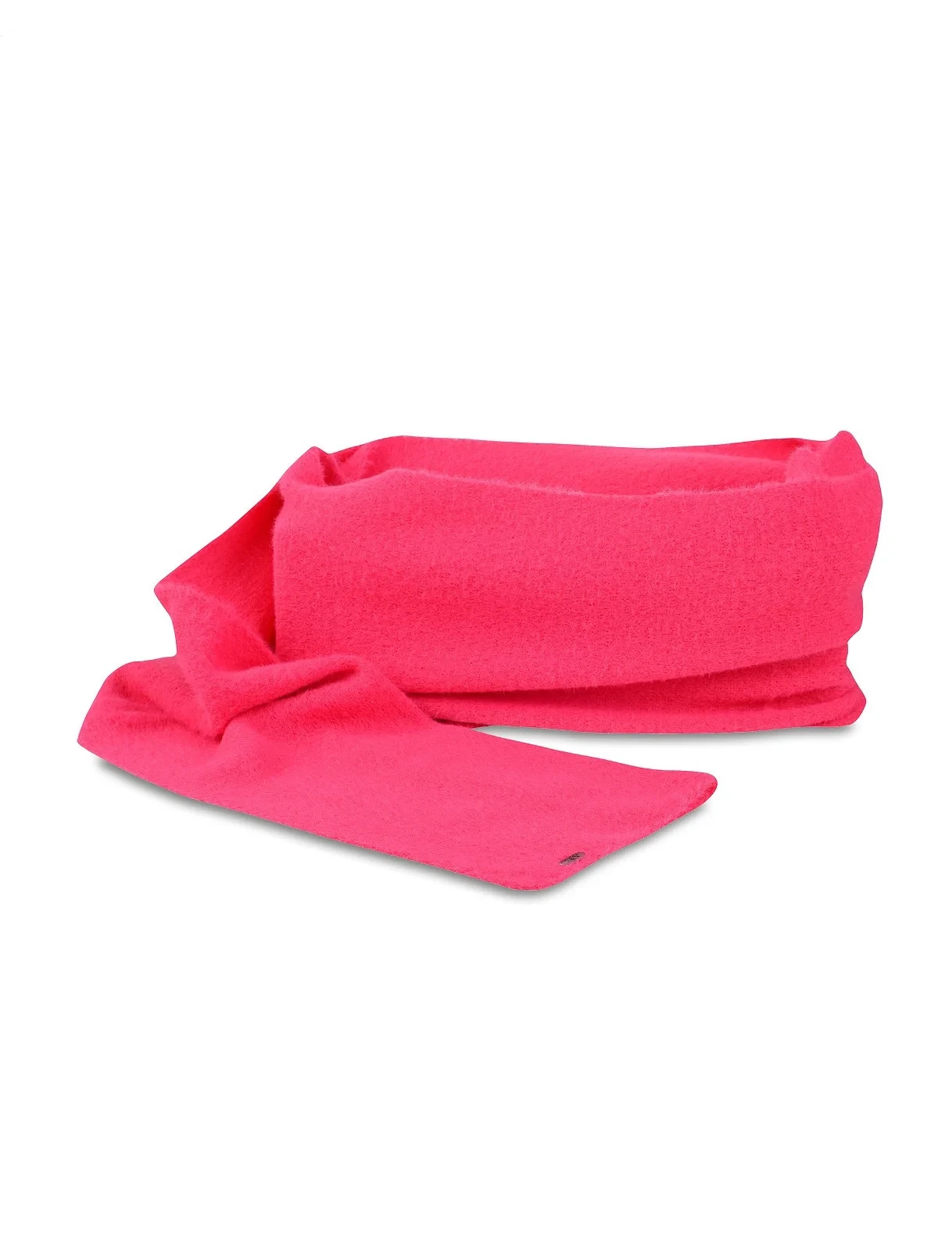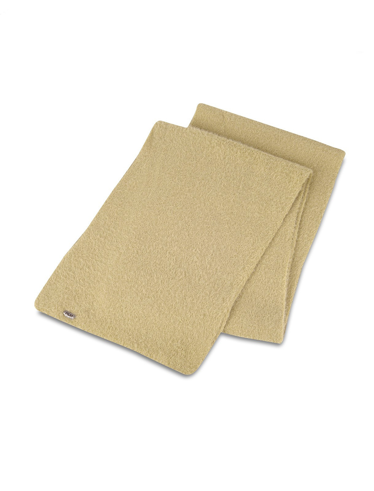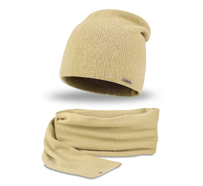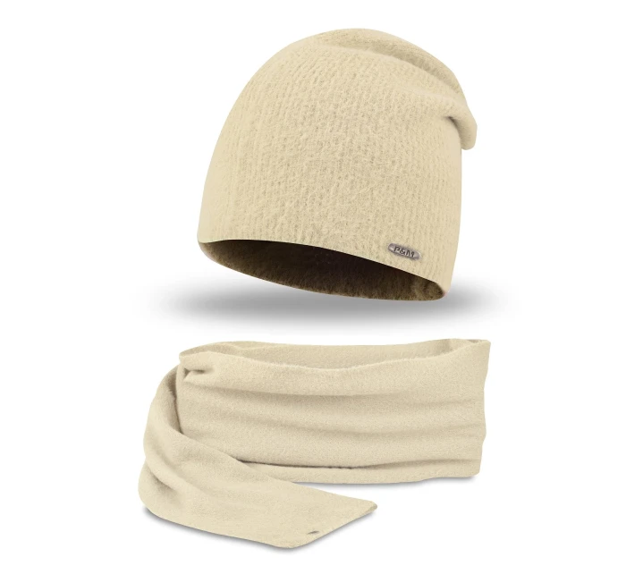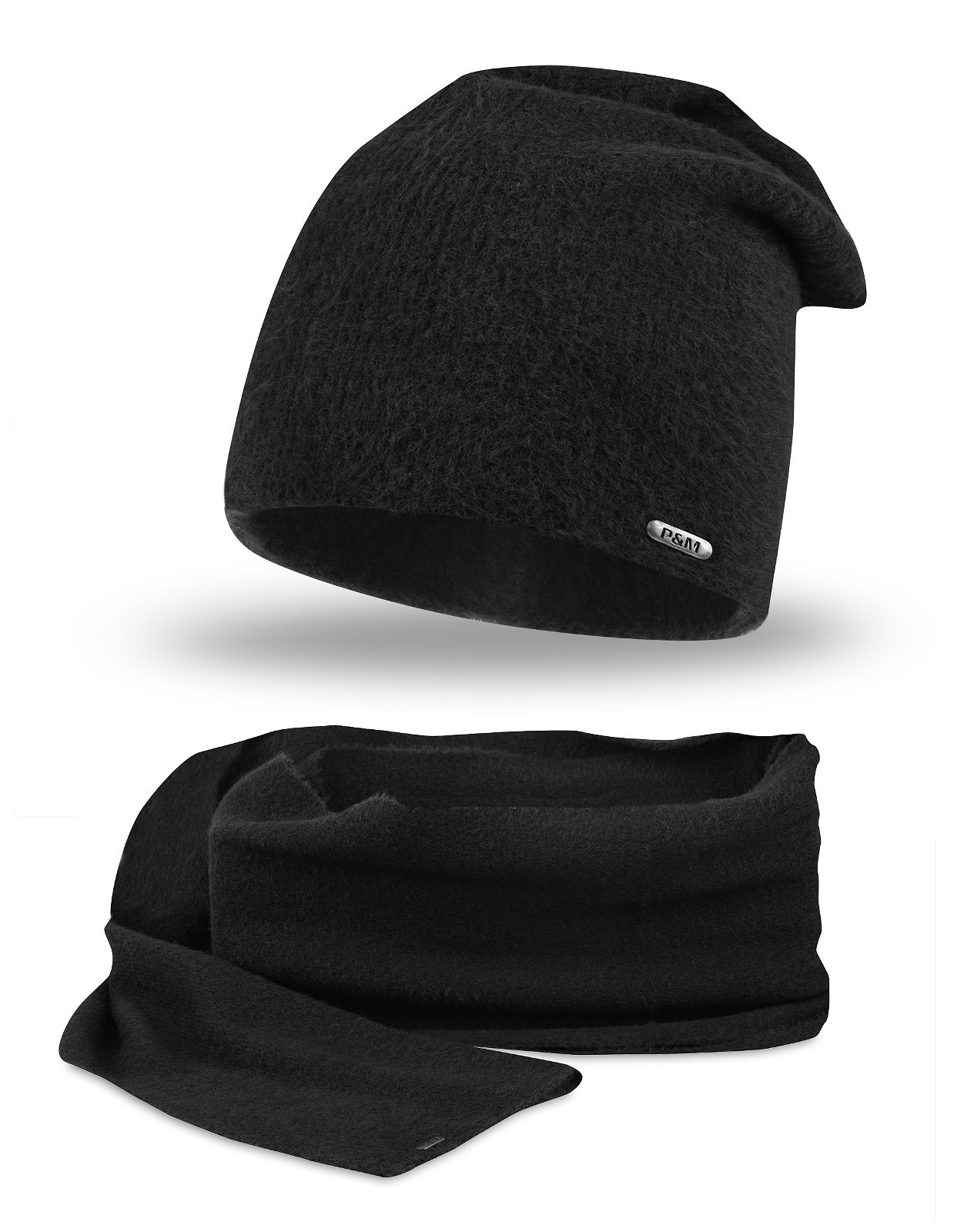 Šála je vyrobená z měkké a příjemné tkaniny s mechovitým kožíškem. Model zdobí logo P&M.