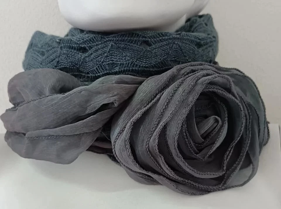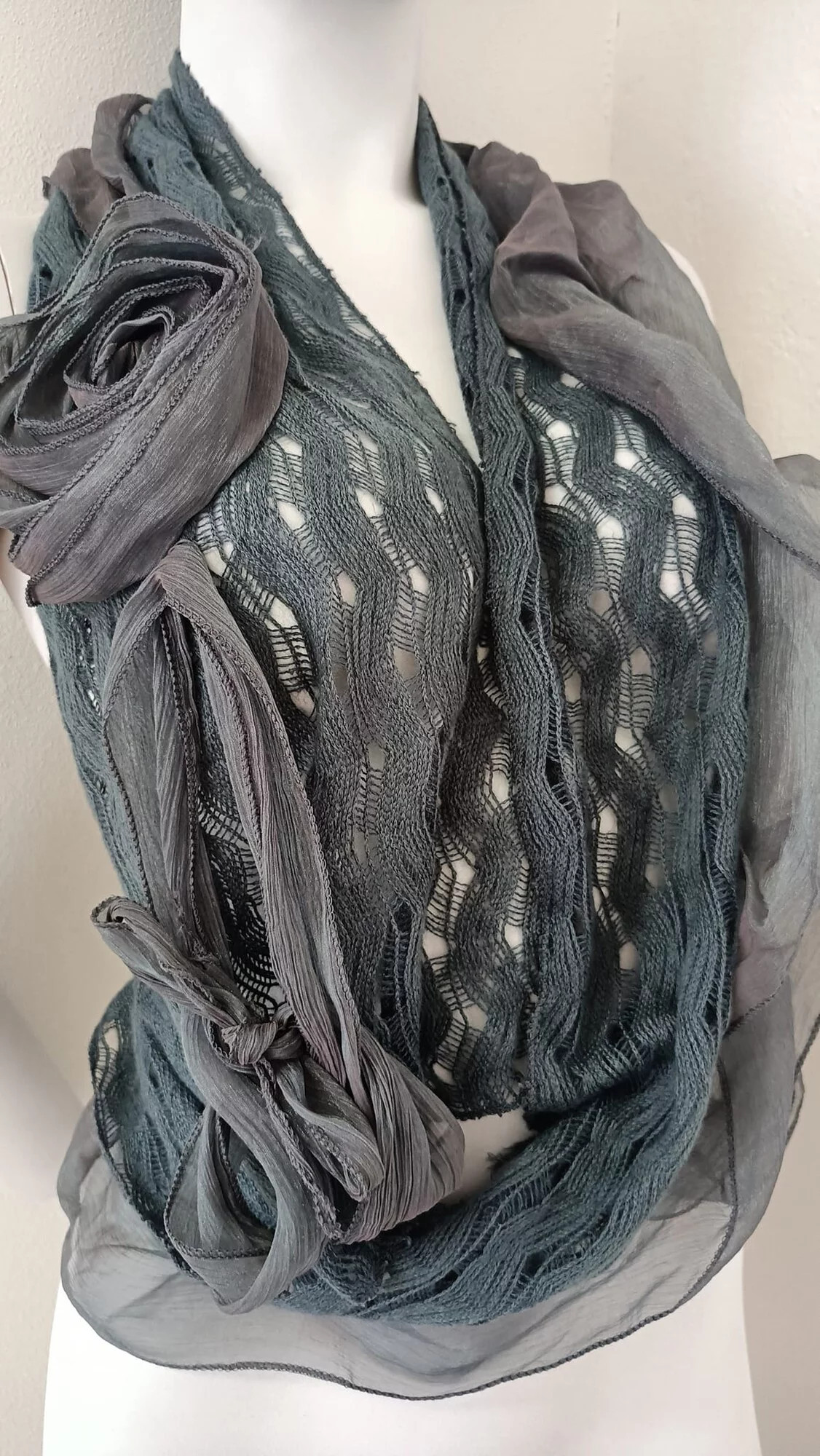 Dámská luxusní šála s kreativními aplikacemi. Materiálové složení: 60% viskóza, 40% lana