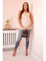 Stylová dámská halenka vyrobená z elegantní, jemně lesklé látky se saténovým efektem. Model se vyznačuje efektním vodopádovým výstřihem, který dodává celku jemnou smyslnost a sofistikovanost. Volnější střih zajišťuje krásné padnutí na postavu, poskytuje volnost pohybu a pohodlí při nošení. Perfektní volba na večerní výlety, elegantní setkání nebo každodenní outfity v kombinaci se sakem. Univerzální velikost, vhodná pro ženy nosící S, M nebo L.
