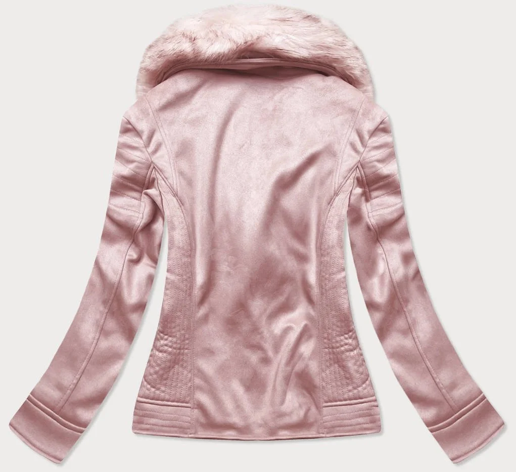 Dámská semišová bunda ramoneska v pudrově růžové barvě s kožešinou (6502big)
