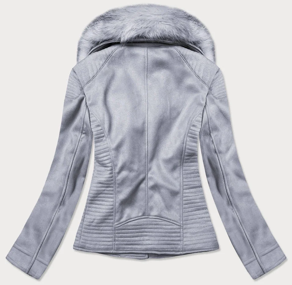 Krátká semišová bunda ramoneska s kožešinou