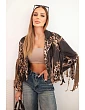 Dámská semišová bunda s leopardím vzorem a třásněmi je ideální volbou pro ženy, které se rády vyčnívají stylovým a odvážným vzhledem. Efektní leopardí vzor spojený s dlouhými třásněmi vytváří jedinečný boho charakter s nádechem rockového klimatu.