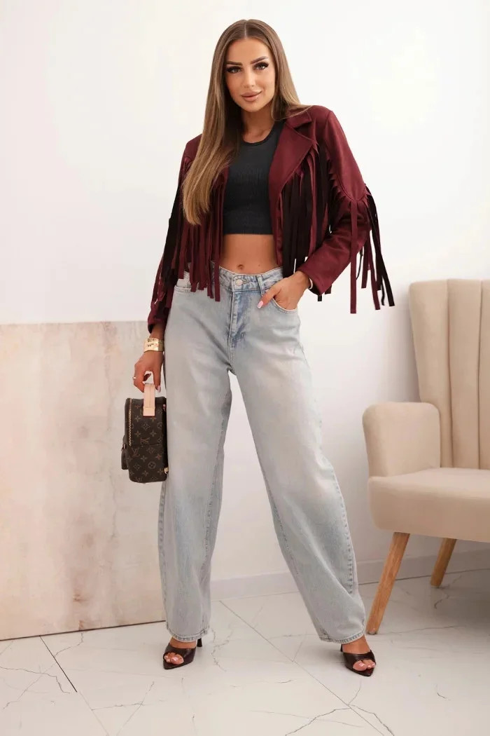 Dámská semišová bunda s třásněmi bordó