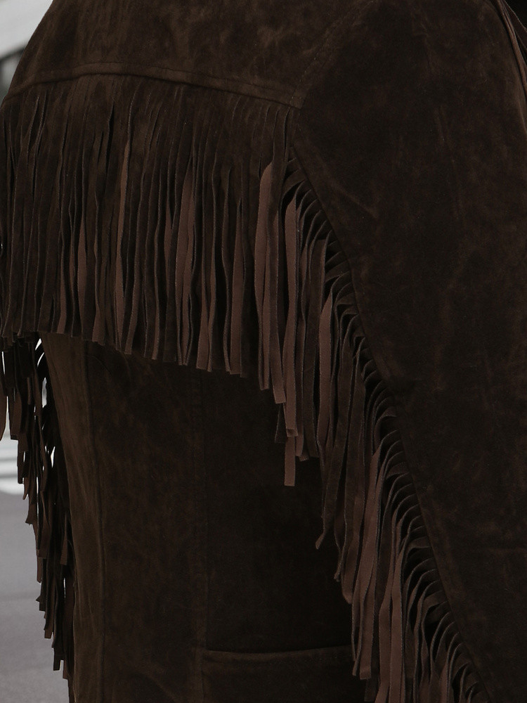 Dámská semišová bunda s třásněmi ty5573 coffee