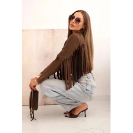 Dámská semišová bunda s třásněmi hnědá