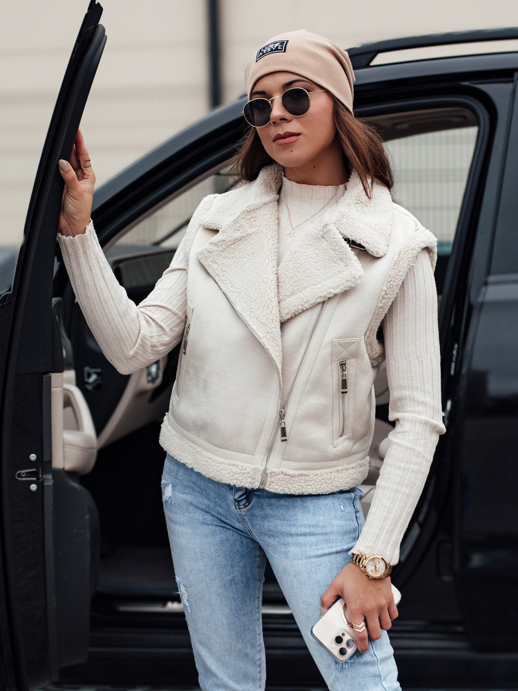 Přidání recenze k Dámská semišová vesta s ovčí kůží WOOLZIP bílá FashionStreet TY4743