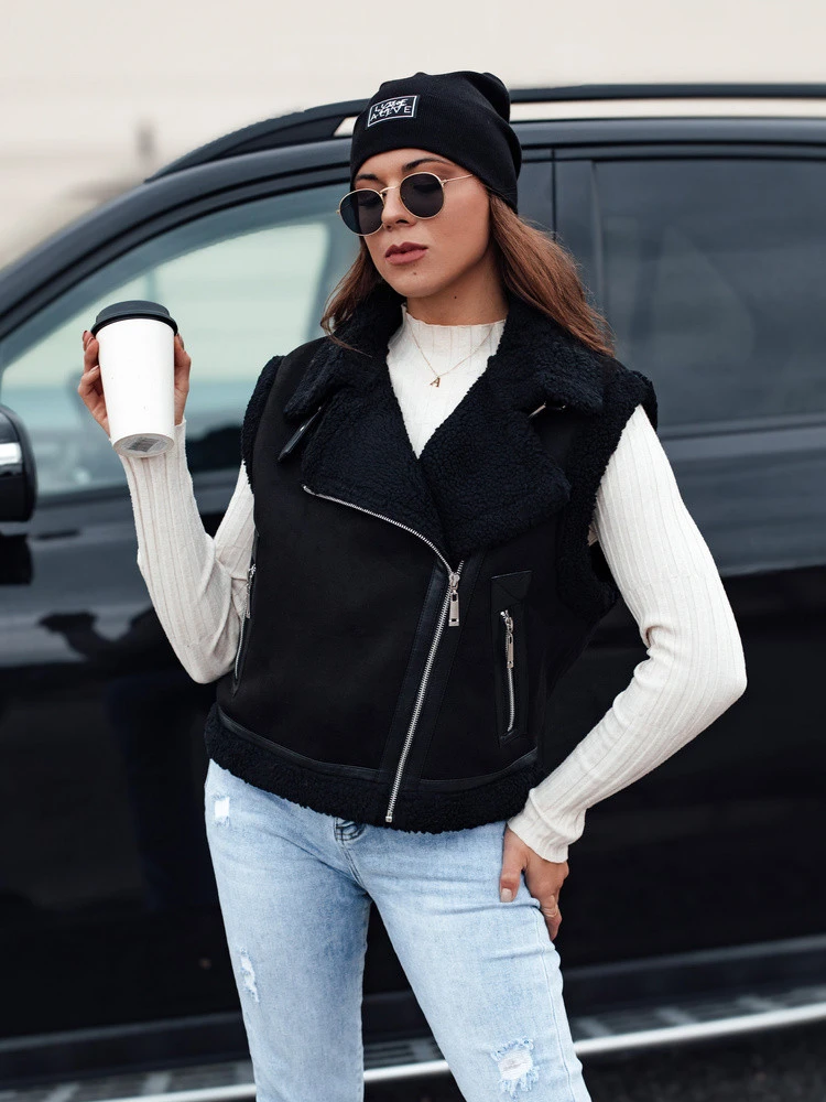 Přidání recenze k Dámská semišová vesta s ovčí kůží WOOLZIP černá FashionStreet TY4742