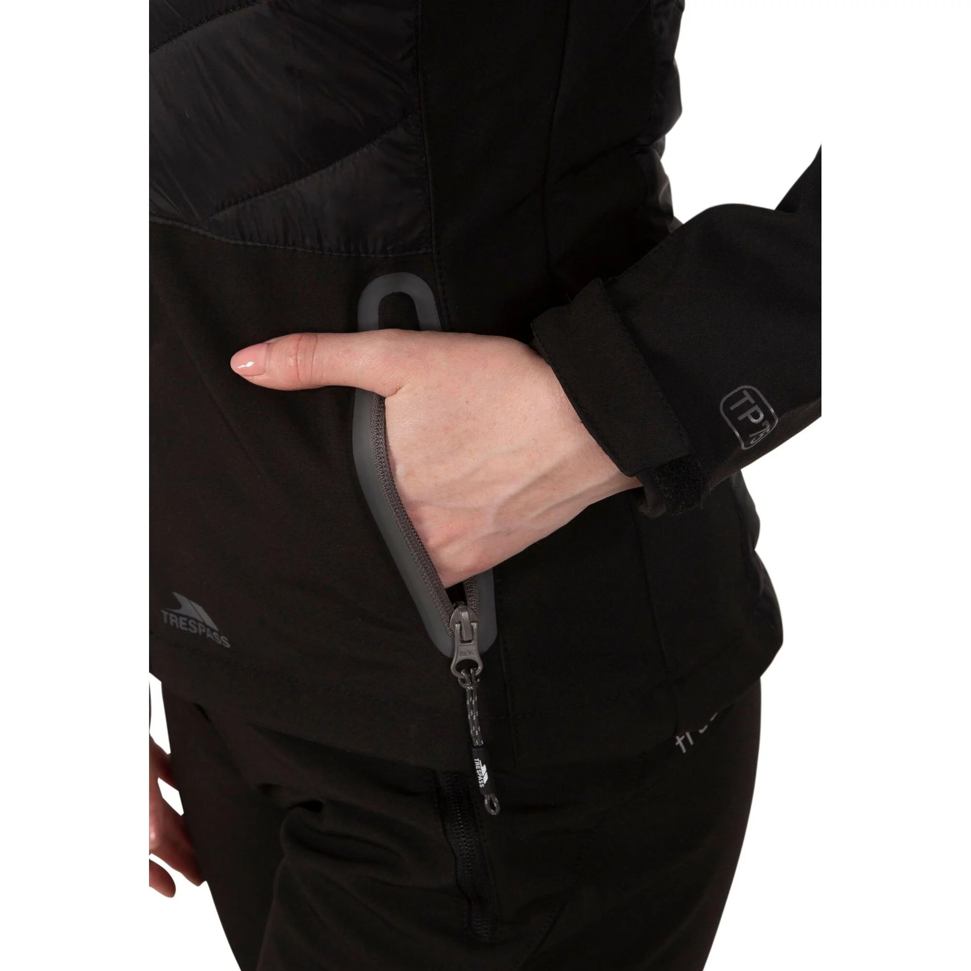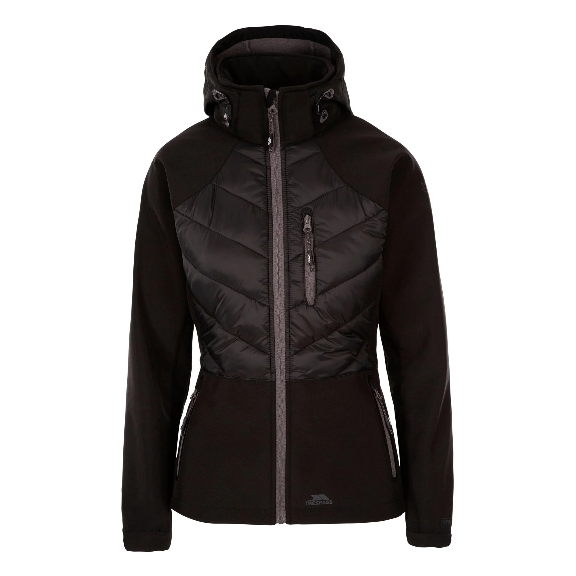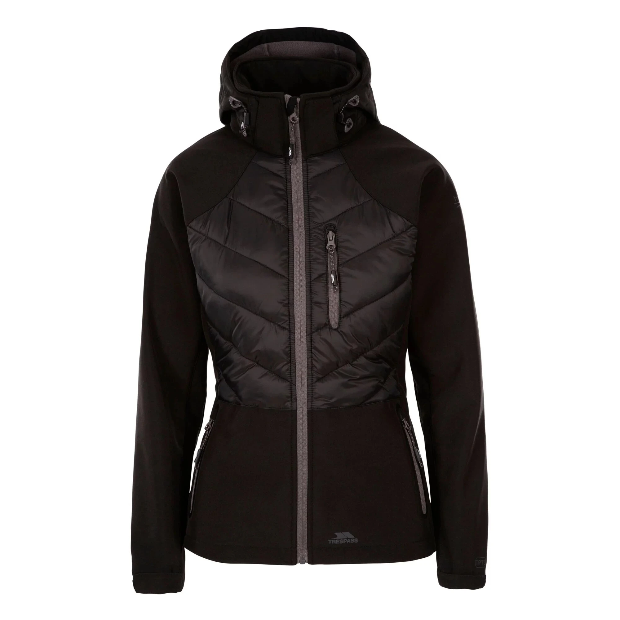 Dámská softshellová bunda Trespass Elvira s kapucí vás skvěle ochrání proti všem živlům. Větru a vodě odolný materiál o parametrech nepromokavosti a prodyšnosti 8000/3000 je skvělou volbou do deštivého počasí. Na bundě oceníte praktické prvky jako je nastavitelná kapuce, kapsy uzavíratelné zipy, nastavitelné manžety rukávů či hlavní zip s ochranou brady proti poškrábání. To vše v elegantním provedení.