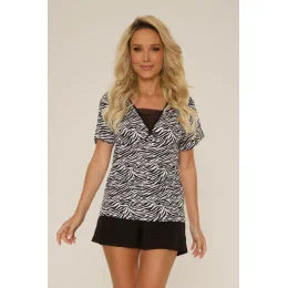 Dámské pyžamo s krátkým rukávem, vyrobené z viskózy s elastanem, doplněné pevnými šortkami s krátkým rukávem.