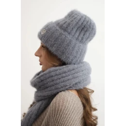 Stylový zimní komplet složený z měkké, nadýchané čepice a ribbed šály. Čepice se dokonale přizpůsobí hlavě, zajišťuje tepelný komfort a módní vzhled. Šála klasické délky se pohodlně omotává kolem krku a zaručuje ochranu před chladem.