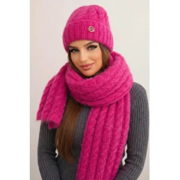 Přidání recenze k Dámská souprava čepice a šály s proužky s ozdobou fuchsie
