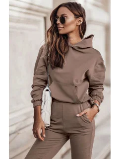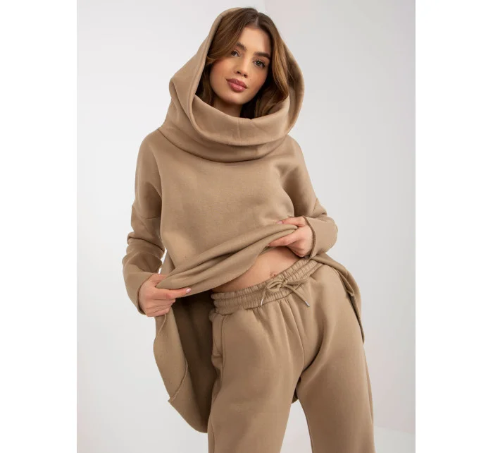 Tmavě béžová tepláková souprava s asymetrickou mikinou .