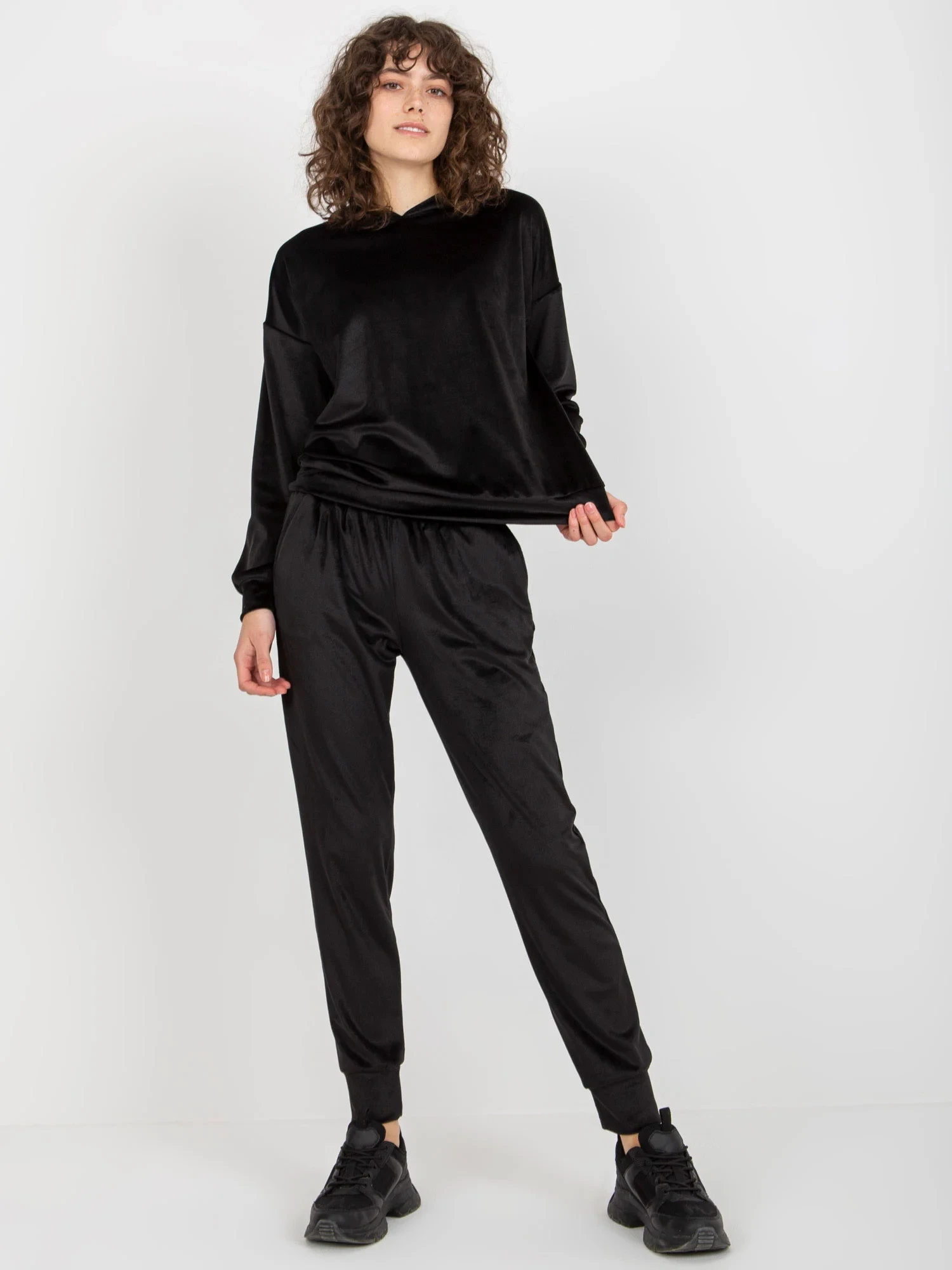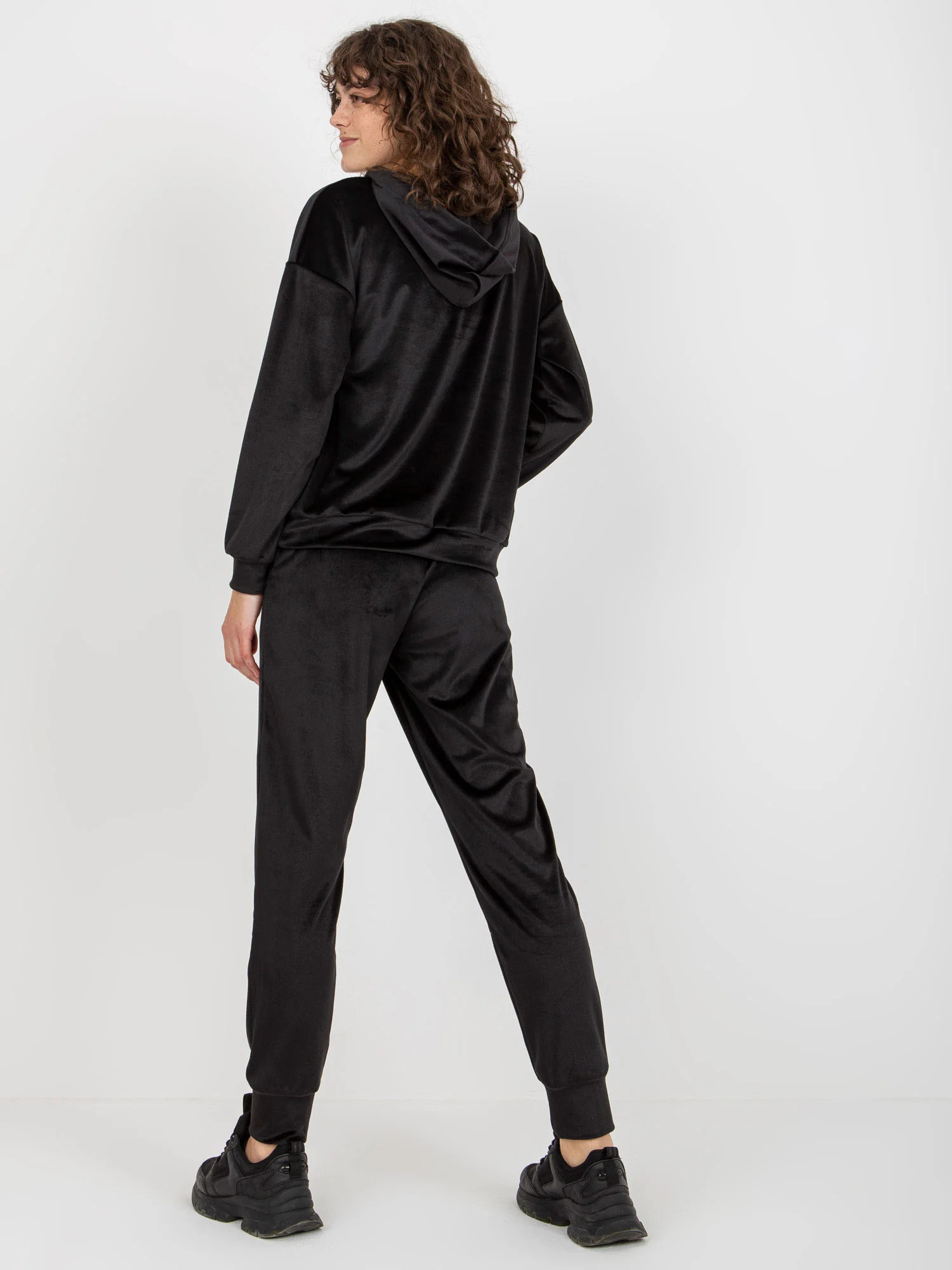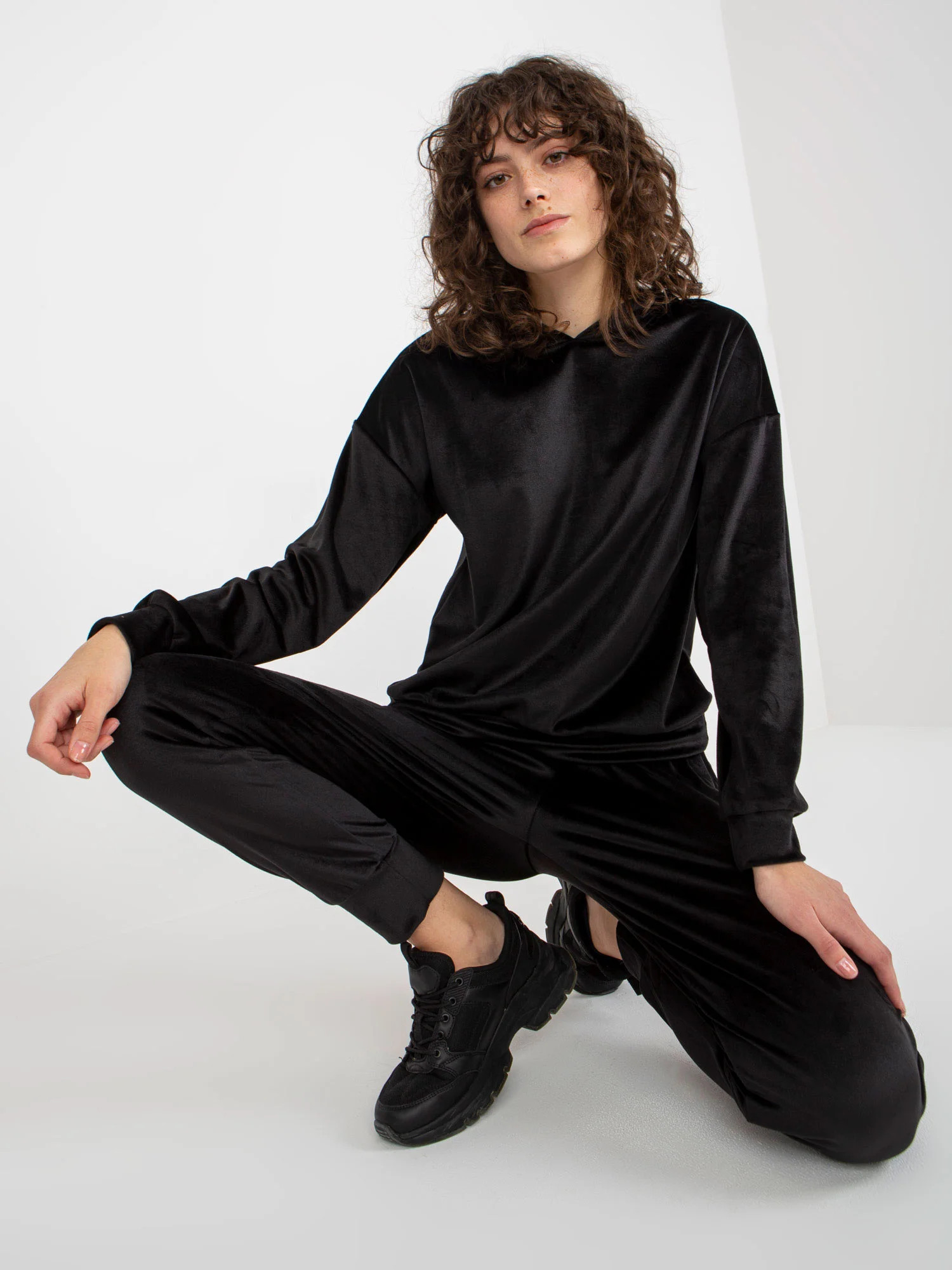 Černý dámský velurový komplet s kalhotami a mikinou .