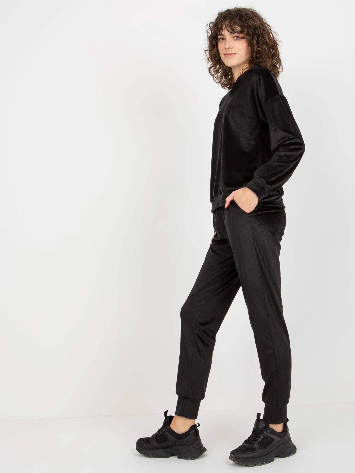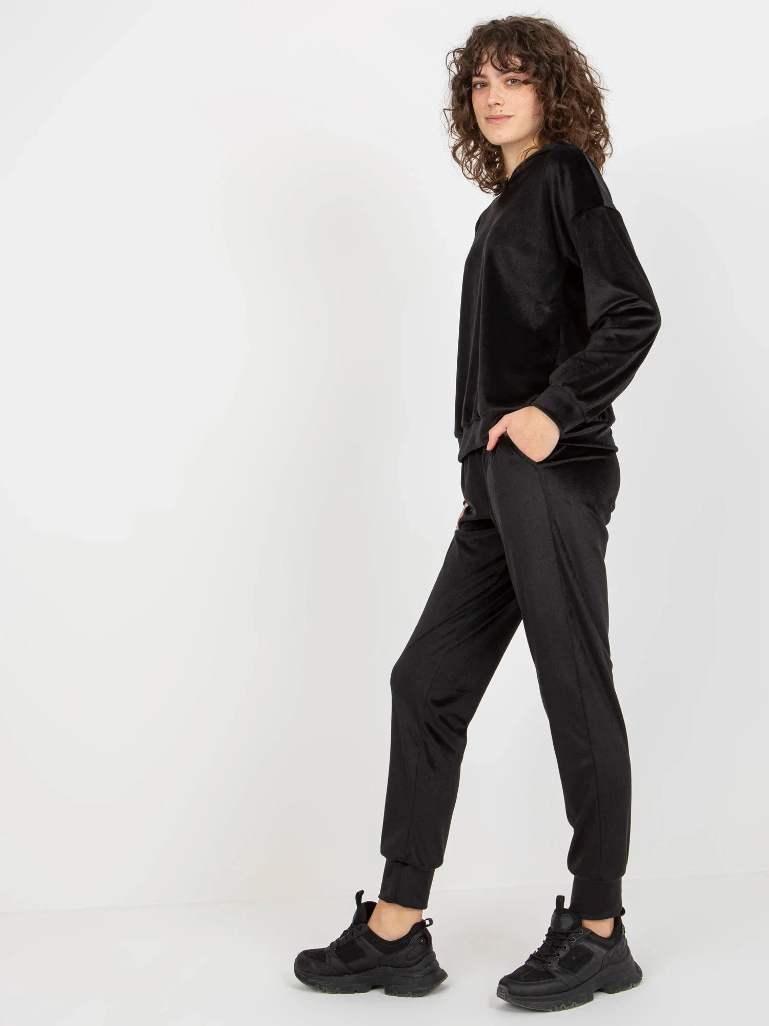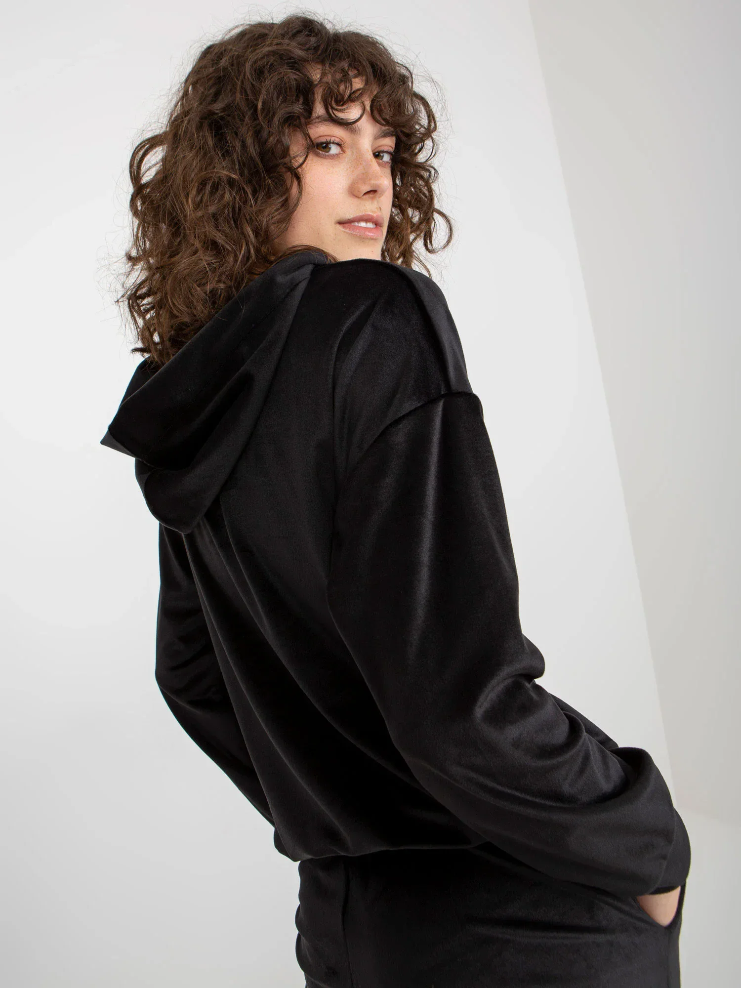 Černý dámský velurový komplet s kalhotami a mikinou .