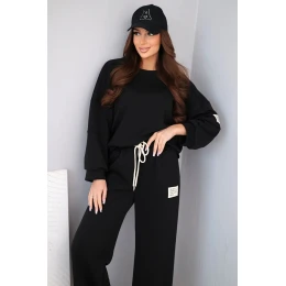 Jemný, mírně elastický materiál s převahou viskózy zajišťuje, že set skvěle padne na postavu a poskytuje komfort nošení po celý den. Mikina má klasický střih s kulatým výstřihem, kalhoty mají elastický pas se šňůrkou a volné nohavice, které zajišťují volnost pohybu.