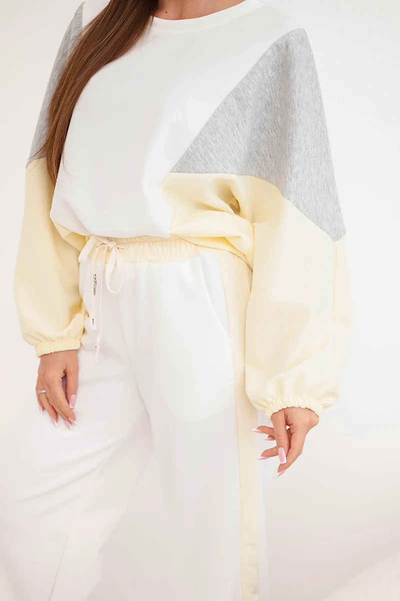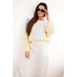 Dámská souprava máslo s volnou mikinou a kalhotami s širokým nohavicí žlutý