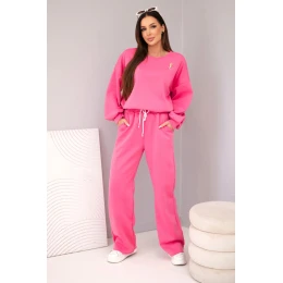 Dámská souprava máslová mikina s broží a kalhoty s rovnými nohavicemi růžový