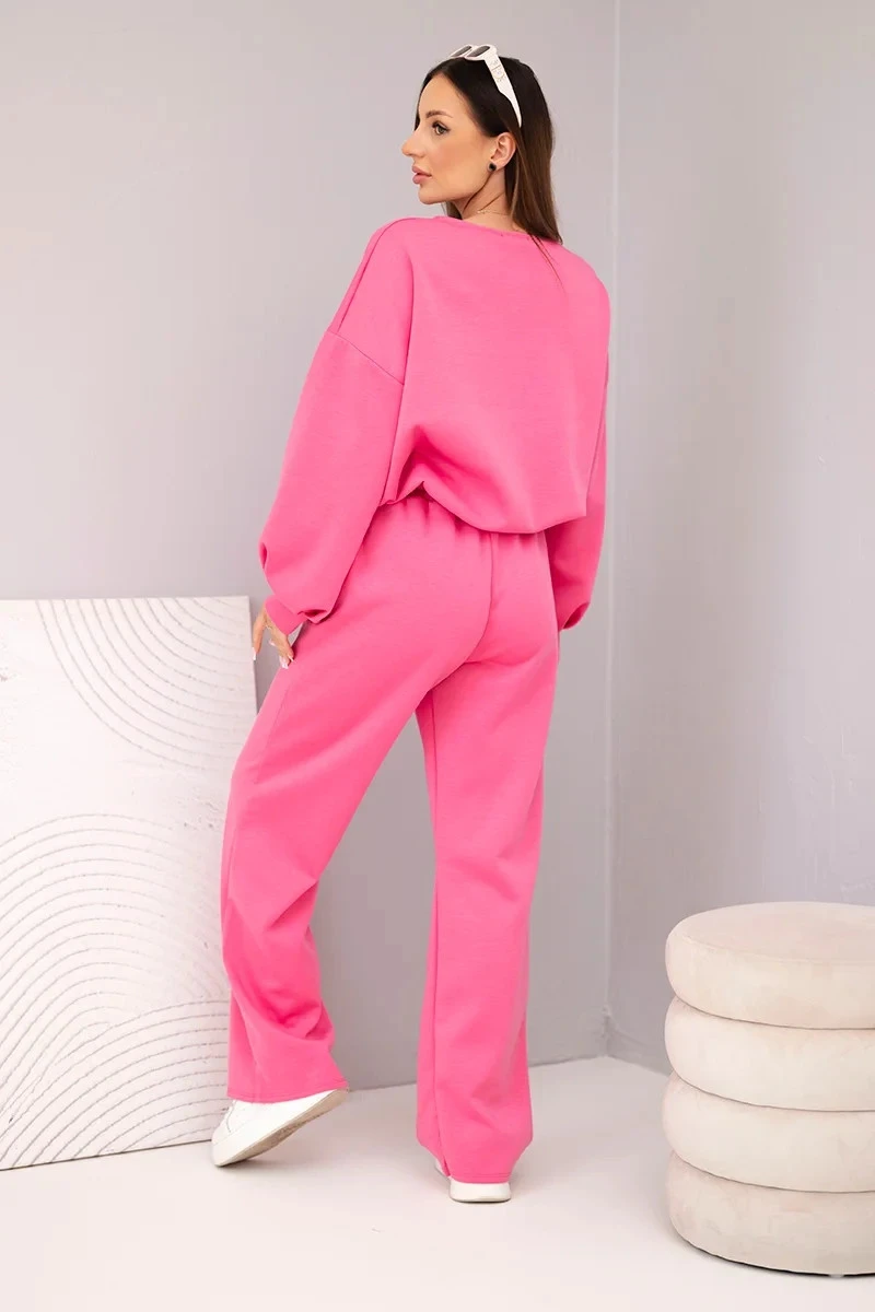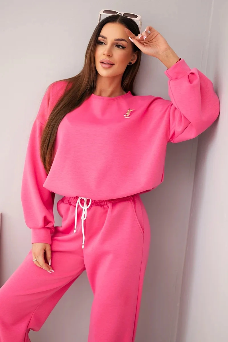 Dámská souprava máslová mikina s broží a kalhoty s rovnými nohavicemi růžový