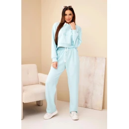 Dámská souprava máslová mikina s límečkem a rovné kalhoty mátová