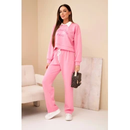 Dámská souprava máslová mikina s límečkem a rovné kalhoty světle růžový
