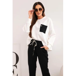 Stylový a pohodlný dámský souprava tepláková je ideální nabídkou pro ženy, které oceňují komfort a módní vzhled. Mikina z měkkého materiálu volného střihu byla obohacena o kontrastní kapsičku s roztomilým akcentem ve tvaru srdíčka, což dodává celku ženský půvab. Kalhoty s elastickým pasem a tkaničkami zajišťují dokonalé přizpůsobení postavě a plnou svobodu pohybu.