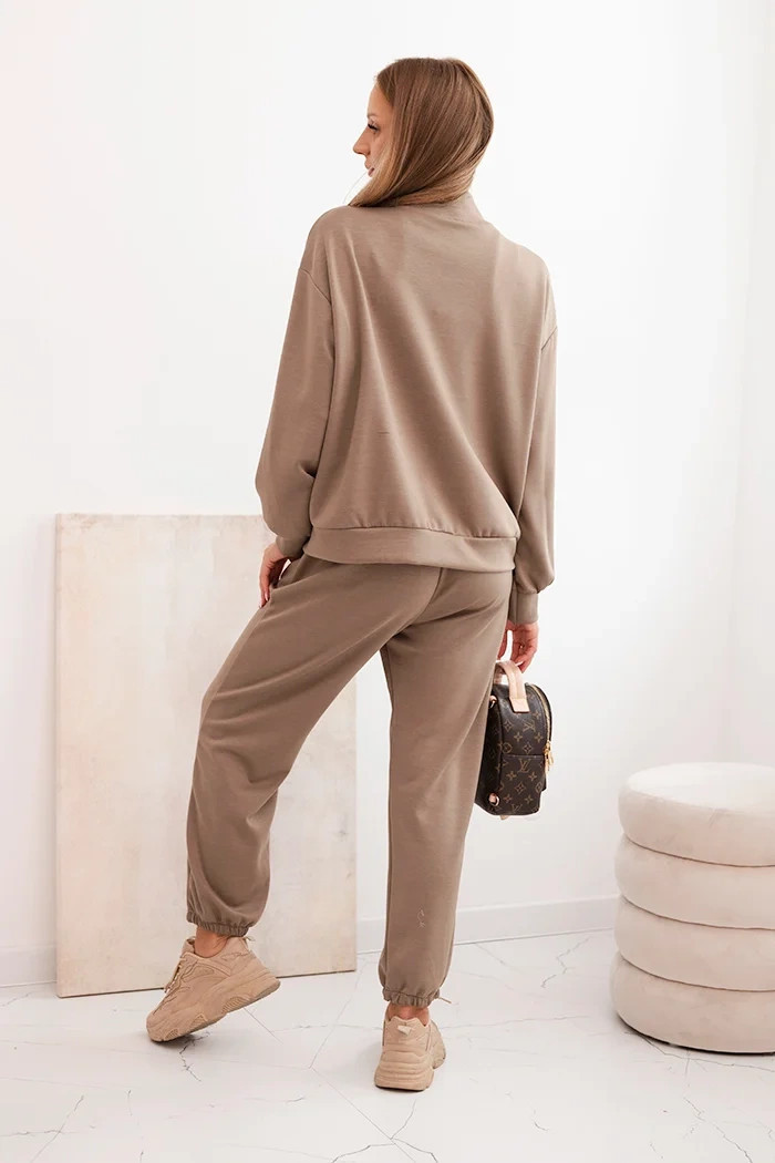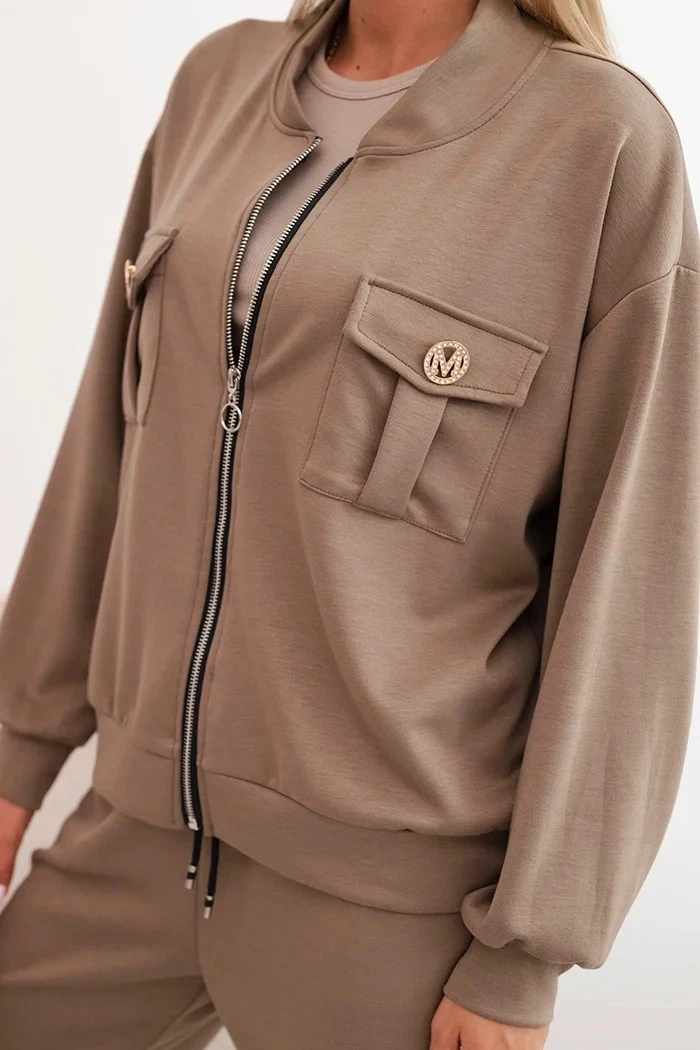 Elegantní a pohodlný dámský komplet v máslovém provedení, vytvořený s ohledem na komfort a módní vzhled. Skládá se z rozepínacího svetru s efektními kapsami zapínanými na ozdobné knoflíky a kalhot s elastickým pasem a šňůrkou, které zajišťují dokonalé přizpůsobení. Vyrobeno z vysoce kvalitní viskózy s přídavkem polyesteru a elastanu, je měkké, příjemné na dotek a skvěle se přizpůsobuje postavě.