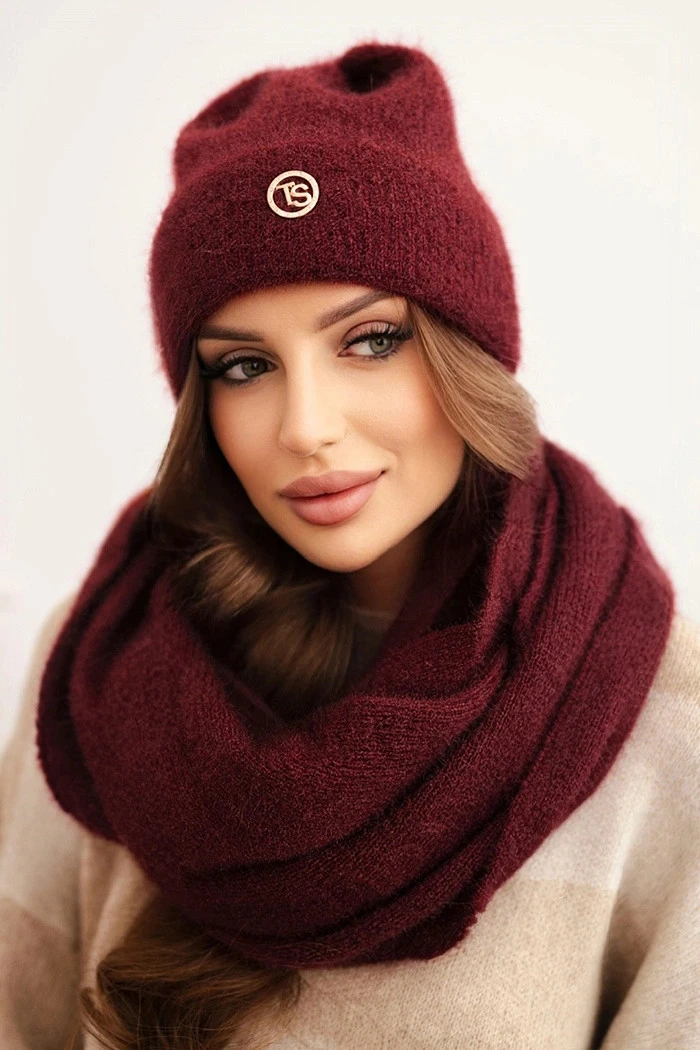 Dámská souprava s čepicí a model 21441702 z měkké pleteniny bordový - K-Fashion