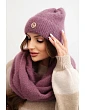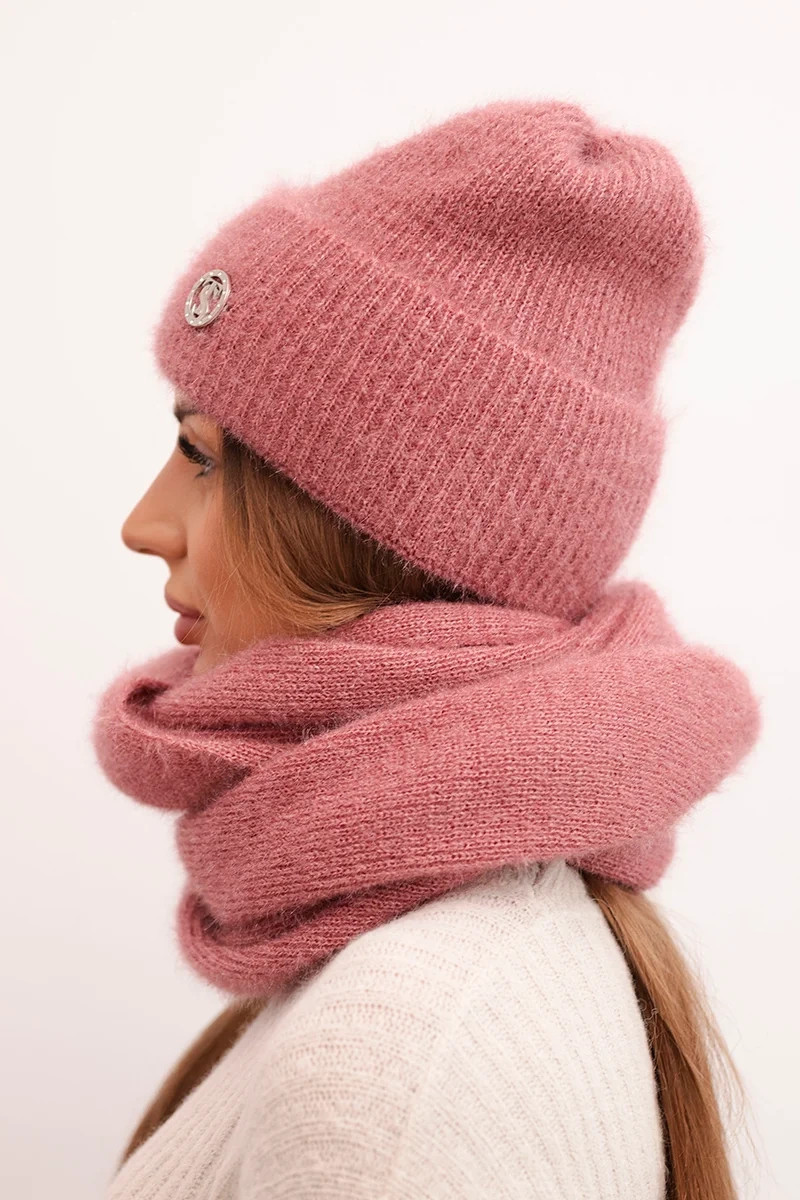 Dámská souprava s čepicí a šálou z měkké pleteniny tmavě pudrově růžová