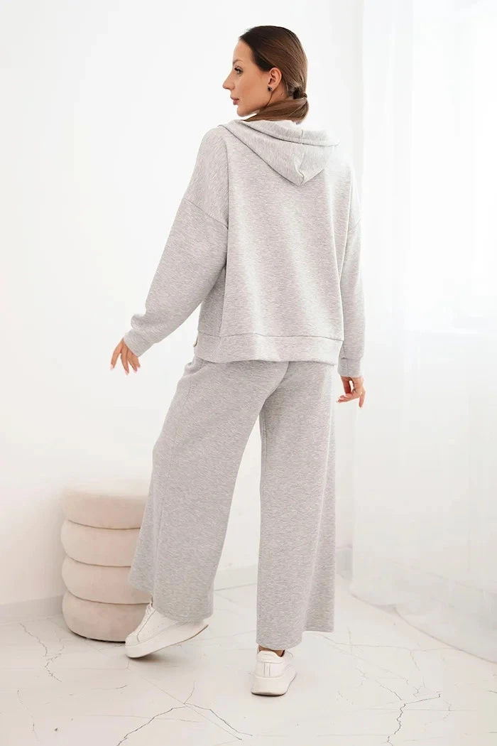 Dámská souprava s širokými nohavicemi a mikinou na zip šedá