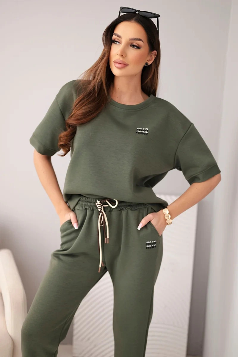 Stylový dámský komplet je vynikající volbou pro ženy, které si cení pohodlí a módního, minimalistického stylu. Sada se skládá z volné blůzky s krátkým rukávem a pohodlných kalhot s elastickým pasem. To je ideální dámský komplet na každodenní nošení – hodí se jak na procházku, nákupy, tak i do domácího prostředí.