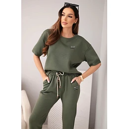 Dámská souprava viskózová máslová s krátkým rukávem a kalhotami s ohrnutým nohavicí khaki