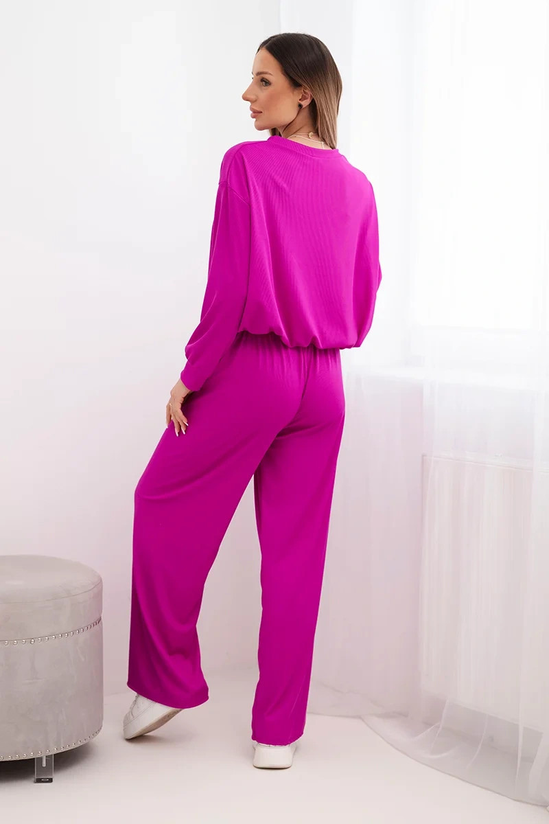 3. Dámská souprava viskózová mikina s přívěskem a široké kalhoty tmavě fialový