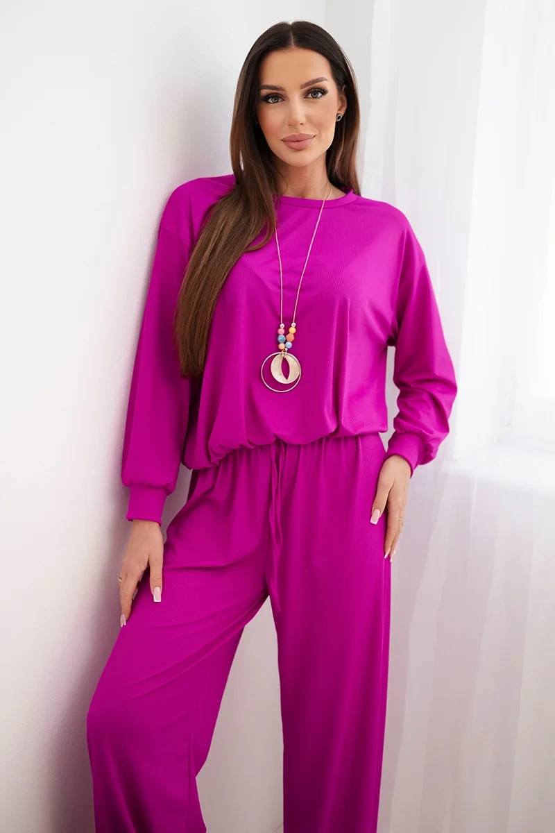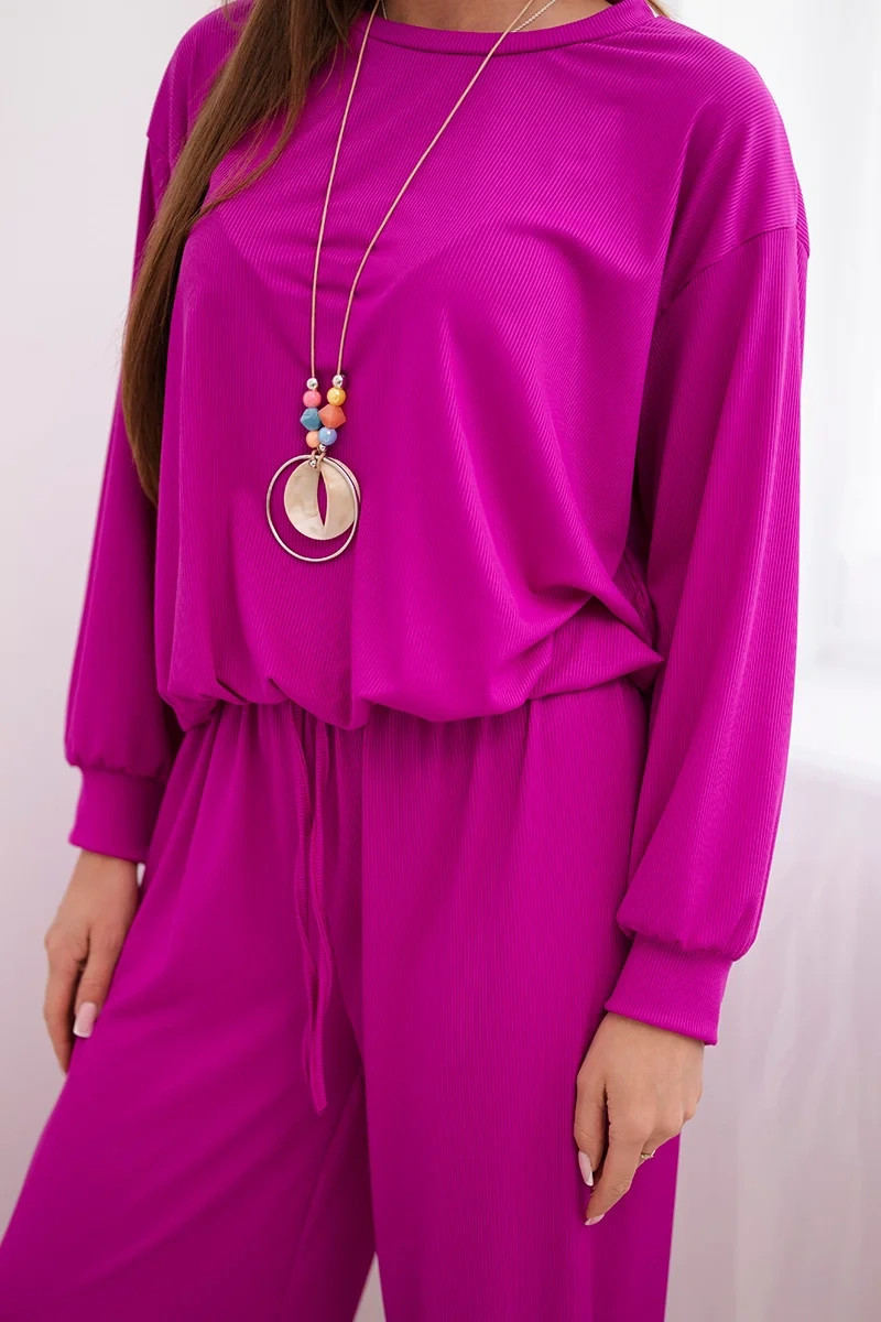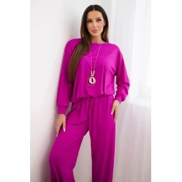 • Dámská souprava viskózová mikina s přívěskem a široké kalhoty tmavě fialový