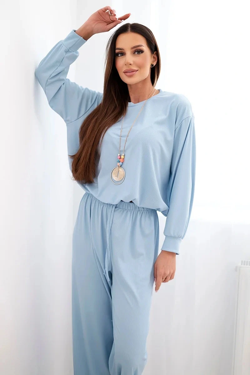 Dámská souprava z model 21951969 mikina s přívěskem a široké kalhoty modrá - K-Fashion