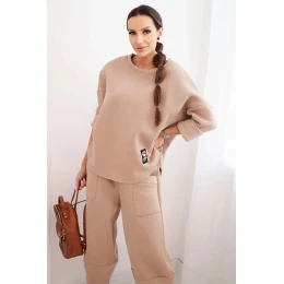 Dámská souprava z teplejšího materiálu se širokými nohavicemi béžová