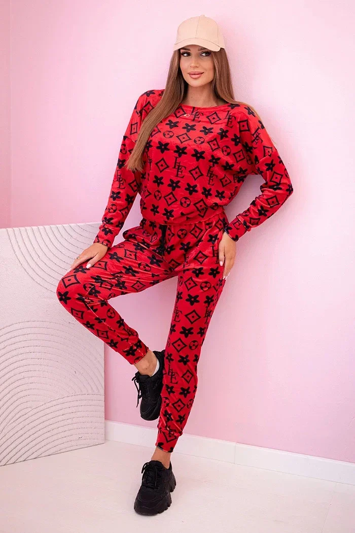 Dámská souprava z veluru s model 21149313 červený - K-Fashion
