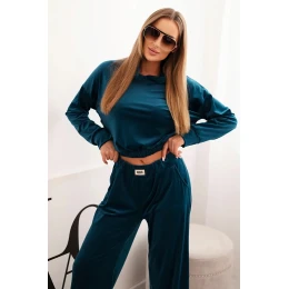 Dámská souprava z veluru s širokými nohavicemi a mikinou s kapucí chabrová