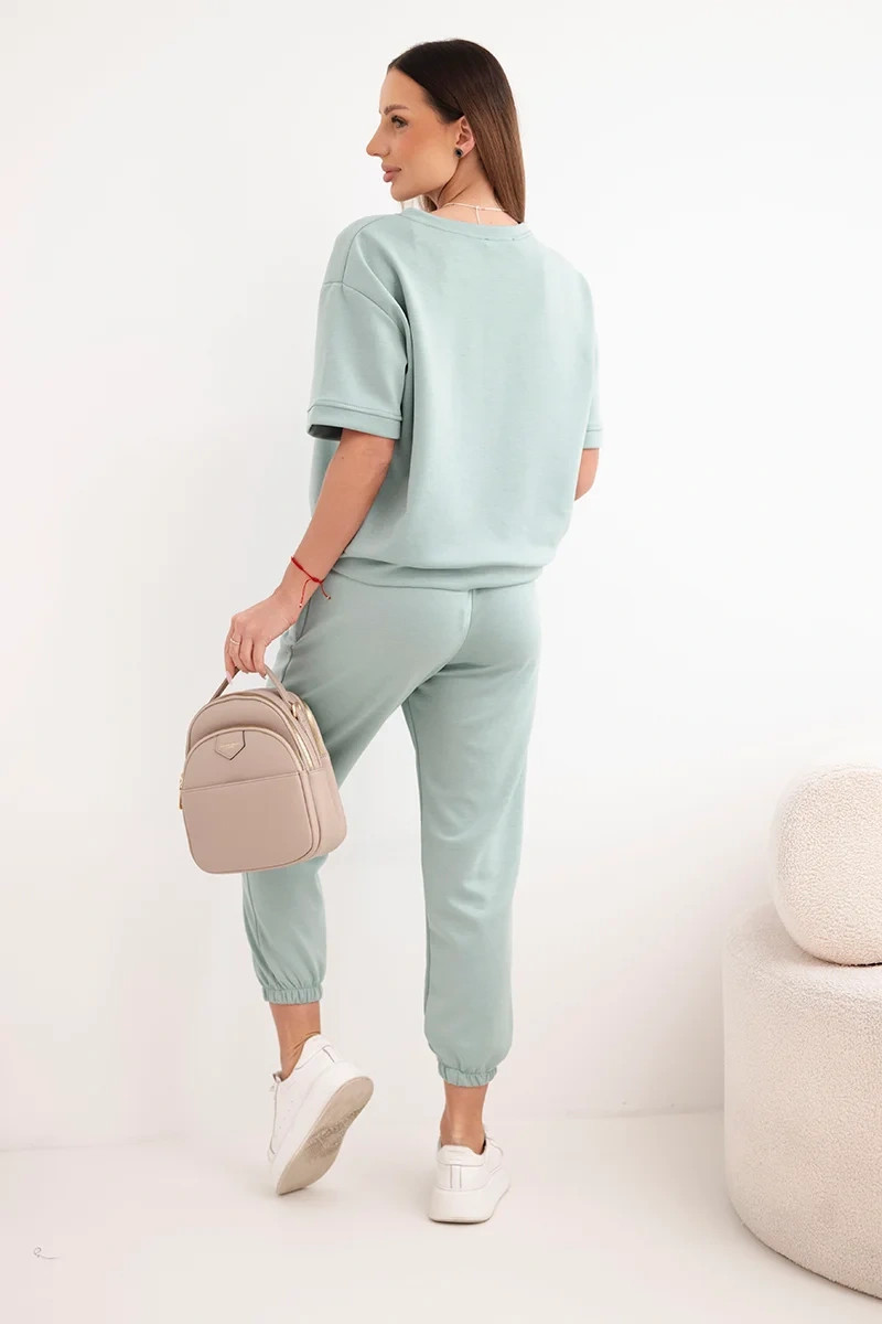 Dámská souprava z viskózy máslíčko s krátkým rukávem a kalhotami tmavě mátová